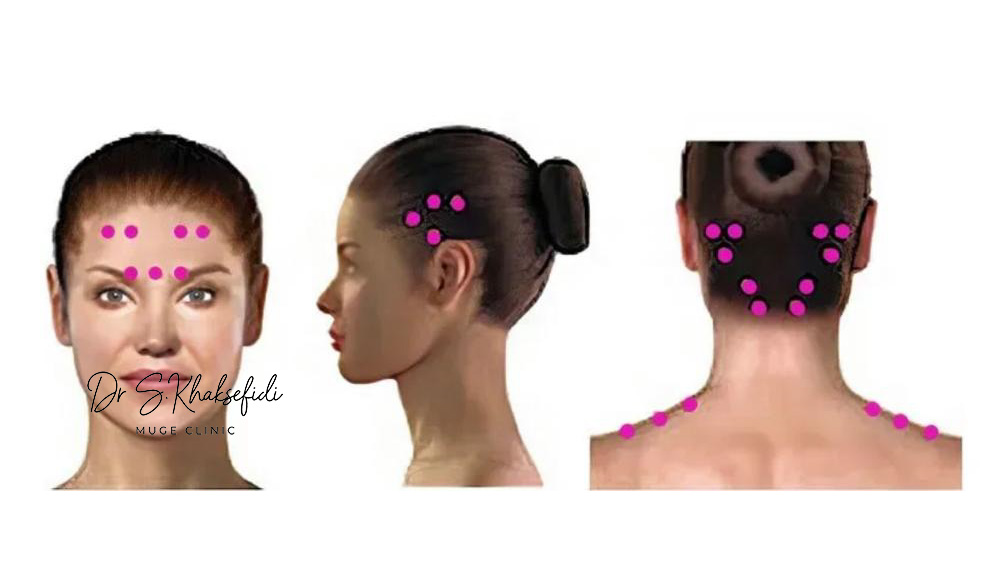 نقاط تزریق بوتاکس سردرد با بوتاکس زیبایی متفاوت است.